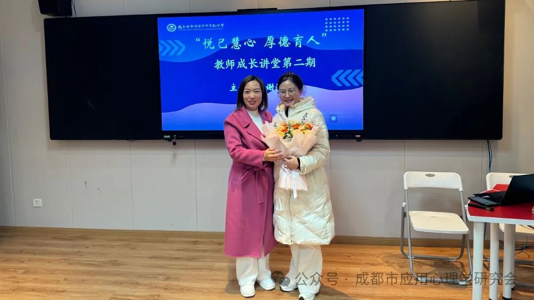 整个活动氛围轻松而愉快,不仅让教师们学到了缓解压力的科学方法,也提供了彼此倾诉和支持的机会,其中就有一些教师向谢老师倾吐了作为班主任自己身上所肩负的责任和压力。活动结束后,新津实验高中的分管德育的唐校长代表教师们向谢老师献上鲜花并表示,这样的活动非常贴合教育工作者的需求,学校希望今后能组织更多类似的活动,为教师心理健康保驾护航。