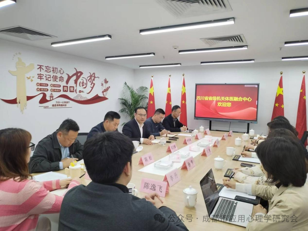 四川省省级机关体医融合中心是中共四川省直属机关工作委员会主管的四川省省级机关体育协会批准设立的机构,是为提高干部职工的健康水平,普及和推广“体医融合”全民健康活动而成立的,是促进全民健康的新措施。他们将在成都市应用心理学研究会的心理健康产品、心理科学研究、心理人才培养和科研成果转化等领域展开深入的合作,利用资源优势展开积极的探索与落地。
