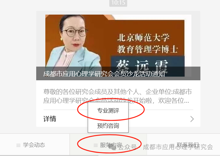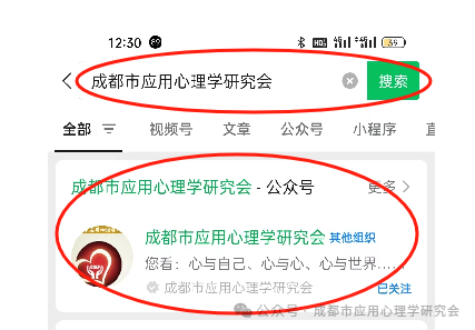 第一步,搜索并关注“成都市应用心理学研究会”公众号;