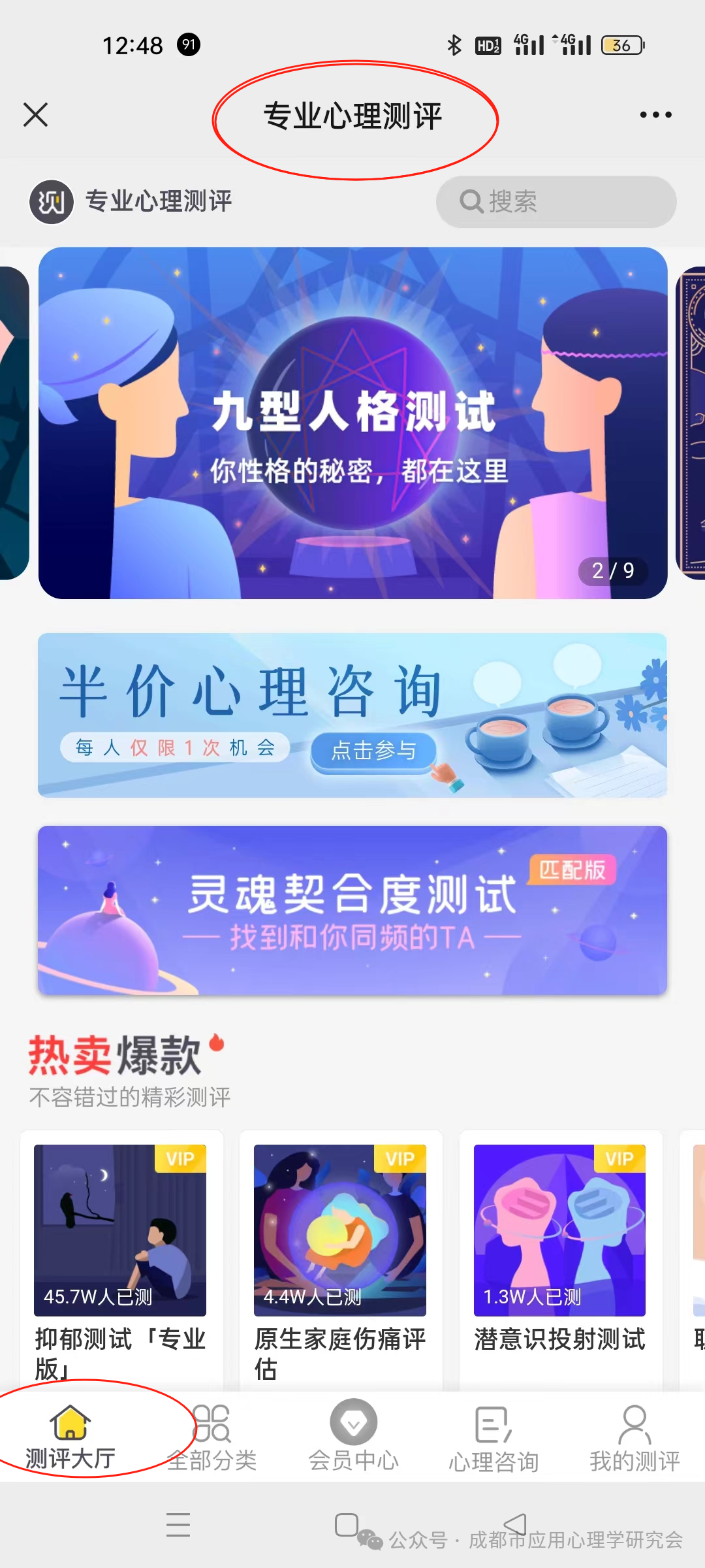 第三步,在打开的测评大厅选择自己想测评的主题并支付费用;